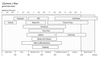 But don't use those values to calculate the setting for your brew method. Use our awesome chart generator to find the correct grind size for your brew method!
